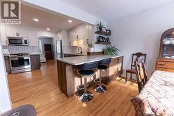 **Suite Sensation Meets Modern Luxury**Welcome to a home where high-end design meets functional living. This property has undergone over $100,000 in gorgeous custom renovations, blending "suite sophistication" with thoughtful, modern upgrades. From the moment you step onto the matching red oak hardwood floors that flow throughout the main level, you will feel the quality and care poured into every square inch. The heart of the home is a spectacular kitchen that has been professionally opened up to a sunny, south-facing dining room, creating a bright and airy atmosphere perfect for entertaining. This chef’s dream features sparkling quartz countertops, a pantry , extra cabinetry, and custom built-in shelving and bench seating.The main level offers two huge bedrooms and a designer bathroom that feels like a private spa, complete with trendy penny-tile flooring, a stunning stone vessel sink, and a beautifully finished shower. Adding to the incredible value of this home is a separate rear entrance that leads directly downstairs to a fully finished and furnished lower level. This versatile space includes a functional second kitchen, a large third bedroom, a three-piece bathroom, and a flexible room perfect for a home office or gym, all while maintaining access to a shared laundry area.Step outside to enjoy the covered back deck overlooking a large, private yard—an ideal oasis for summer evenings. The property is rounded out with a single detached garage, an additional storage shed, and convenient off-street parking. Situated in a quiet, prime south-side location, you are just two blocks away from the Michener Recreation Centre, making this the perfect home for families or those seeking a premium investment. A Pleasure to View; a Privilege to Own. Its a great home isn't it! Shouldn't it be yours? (id:27)