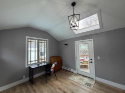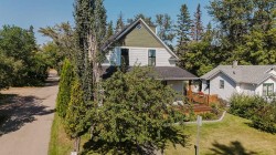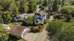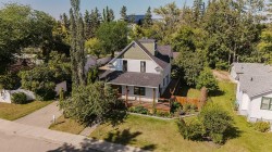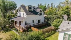 Looking for the perfect Christmas Gift? This beautiful Heritage home should be on everyone's Christmas List! So many updates throughout this incredible home which is located on a gorgeous street with Coronation Park on its doorstep! Plenty of charm as you walk up to the new south facing front covered porch with composite boards that wraps all the way around to the east of the house. The perfect place to sit with a glass of lemonade and look out towards the beautiful park. Walking into the large, amazing foyer with shiplap walls and high ceilings, you will find lots of room for cabinets and benches. The living room with feature walls and electric fireplace has south and east facing windows making it light and bright. Wide plank hardwood floors throughout the main floor! The living room flows into the large dining room with patio door to the east side deck, lovely to catch the morning sun with your first cup of coffee as you overlook the private yard with lilac, plum and apple trees! Off the dining is a gorgeous kitchen with custom kitchen cabinets, with newer appliances (2019), granite counter tops, pull outs in pantry, lots of decorative tile, plus cookbook niche. So lovely! Also on main floor is laundry room and a pretty little half bath., Plus the awesome addition which is a great flex space that can be used as a family room, or large sunny porch to sit and enjoy the sun with new glass door and windows and laminate flooring! Upstairs you will find three spacious bedrooms including the lovely primary bedroom. The family bathroom has a soaker tub and separate shower! Plus the bonus 3rd level loft can be used as an office area or 4th bedroom and has rough in for a bathroom. The basement has a rec area and potential bedroom space and plenty of storage space plus a bathroom with shower. So much on offer here including a double detached garage with gas line for roughed in heat and new door. Some of the many updates are newer roof, new porch, windows in 2019, new insulation in walls with vapour barrier to keep home cool in the summer and warm in the winter! New electrical panel and electrical wiring and plumbing. Added rebar to deck with composite boards. The list goes on . . .this incredible 1908 character home has so much charm plus all the convenience of a new home!