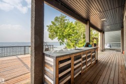 Welcome to your dream lakefront escape at Vezeau Beach! This spectacular 3000 square foot modern home offers the perfect blend of luxury and leisure with minimal yard maintenance, allowing you to focus on what matters most – enjoying life by the water.The custom two-story design features impressive 10-12' ceilings and expansive windows that flood the space with natural light and frame stunning lake views. Step from your master onto a magnificent two-tier deck – the perfect spot to sip morning coffee or toast the breathtaking sunsets. Culinary enthusiasts will appreciate the chef's kitchen with high-end appliances and elegant granite countertops. The home boasts 4 bedrooms including a stunning primary bedroom, 3 bathrooms, beautiful hardwood floors, in-floor heating, and refreshing air conditioning.The outdoor amenities truly shine with a convenient bar and shower. Golf enthusiasts can zip across to the nearby course on your golf cart, while water lovers can enjoy the day on the lake!