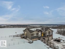Welcome to this stunning 1,581 sq ft bungalow overlooking beautiful Moose Lake. This well-designed home features 3 bedrooms and 2.5 bathrooms, including a luxurious 5-piece ensuite in the primary suite. The open-concept main living area is highlighted by vaulted ceilings, a natural gas fireplace, and large windows showcasing incredible lake views. The bright white kitchen offers a large island, gas range, and side-by-side fridge and freezer — ideal for entertaining and everyday living. Additional features include central air conditioning, a double attached garage, and in-floor heat in the unfinished basement, providing comfort and flexibility for future development. Step outside to a spacious deck complete with a hot tub — the perfect place to relax and take in the peaceful surroundings. Located just minutes from Moose Lake, this property offers the perfect blend of modern comfort and quiet country living. Don’t miss your chance to call this exceptional home yours!