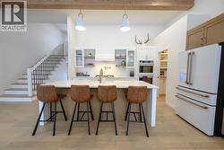 Located in the prestigious Mystic Ridge, this like-new custom home sits on a private 2.47-acre treed lot with paved access, offering the perfect balance of luxury and nature. The bright, open main floor showcases soaring ceilings, custom beam work, and a cozy gas fireplace, creating an elegant yet welcoming atmosphere.A chef-inspired kitchen anchors the home with quartz countertops, premium appliances, a large island, and a butler’s pantry—ideal for entertaining and everyday living. The main-level primary retreat offers a spa-style ensuite and walk-in closet, while the upper level features a vaulted bonus room, built-in office, upgraded laundry, and two spacious bedrooms.Enjoy a heated, finished quadruple garage, oversized deck, and a private yard with trails and play space. Engineered plans for a future shop add excellent potential (county approval required). Close to river and crown land, with city water, air conditioning, and low county taxes. Don't miss out and book your showing today! (id:27)
