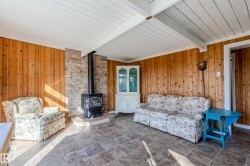 Enjoy lake life in this cozy 2 bed, 1 bath year-round cottage just steps from the water and a short drive to Morinville. Nestled in the peaceful community of Sandy Beach, this home features a spacious deck perfect for entertaining or soaking up the sun. Inside, you'll find an inviting open layout with a freestanding gas fireplace—perfect for cozy evenings. This cottage would be perfect for bachelor living or add bunkbeds for "glamping". Recent updates include newer shingles, baseboard heaters, and a water pump and pressure tank, offering peace of mind and comfort. Whether you're looking for a weekend retreat or a full-time residence, this gem offers the perfect mix of nature, convenience, and charm. Don't miss your chance to own a slice of lake life!