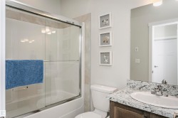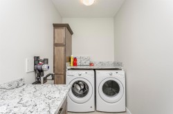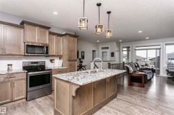Welcome to this exceptional lake-access bungalow. This beautifully crafted home offers the best of both comfort and convenience, with a host of premium amenities including private beach access, a community pool, fitness center, clubhouse, marina, scenic trails, and more. Step inside to a bright and inviting open-concept layout, featuring a cozy fireplace, granite countertops, main floor laundry, and central air conditioning. The spacious primary suite is a true retreat, complete with a luxurious 5-piece ensuite and a generous walk-in closet. Enjoy peaceful mornings on the charming covered front porch and unwind in the evening as you take in stunning sunsets. The private backyard offers ample space for relaxation or entertaining, and the home is ideally situated on one of the largest lots in the community. Plus, you'll love the oversized heated TRIPLE garage — perfect for vehicles, storage, or a workshop. Don’t miss your chance to own a slice of lake life with all the extras — this one has it all!