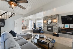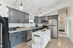 Nestled in one of the best locations of Ross Haven! This Waterfront property was built with intention...family memories that will last forever. Pride of ownership is evident throughout the home. All major renos were completed in 2017. The main floor has two bedrooms with access to a 4 pc bathroom. The Kitchen features stainless steel appliances and lots of counter space. The Dining area is great for dinners at the lake and has access to the wrap around composite deck. The Living area is massive and has a stone wood burning fireplace. This is where is you can truly escape from the hustle and bustle of the city. Upstairs you will find Two more bedrooms, another sunroom and a Two Pc Bath. Don't miss out on this Waterfront Retreat only 45 minutes from the city.
