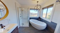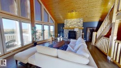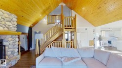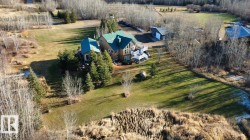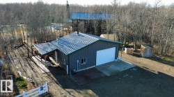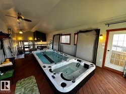 5.9acre property with rolling terrain and a treed laneway featuring spruce and poplar. The 1805 sq ft home, an 864 sq ft shop, and a 650 sq ft recreation structure designed to function as an exercise room and bonus room-originally built in 2002, with a swim-spa addition completed in 2014. All buildings feature metal roofing, and the shop is fully metal-clad, including the ceiling, and finished for leisure and hobby use. The home offers a multi-tiered deck with wrap-around front porch, aggregate sidewalk, and a lower-level walkout with deluxe suite. Interior includes 39 windows and doors, pine log staircases, tongue-and-groove pine ceilings, quartz kitchen and ensuite vanities, under-cabinet lighting, pantry, movable island, electric and gas options for stoves and river-stone wood-burning fireplace. Expertly built by homeowner, a skilled contractor- and conveniently located on a peaceful and private lot.