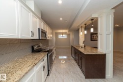 MINT CONDITION EXECUTIVE BUNGALOW WITH SEPARATE ENTRY TO BASEMENT SUITE !! This elegant 1900 sq.ft bungalow is a showstopper and features 10 FOOT CEILINGS, HARDWOOD & CERAMIC TILE FLOORING, STUNNING KITCHEN with GAS RANGE & WALL OVEN & HUGE ISLAND, gorgeous fireplace and so much more !! The main floor has 2 bedrooms + a DEN that can used a 3rd bedroom with 2 full bathrooms including a spa like 5 piece ensuite with large soaker tub, walk-in shower, water closet and walk-in closet. The BASEMENT SUITE, which has a separate entry from the garage, FEATURES 9 FOOT CEILINGS and 2 BEDROOMS WITH FULL ENSUITES, a FULL KITCHEN, LAUNDRY, LARGE REC ROOM and dining room. Incredible location 10 minutes to Edmonton or Leduc or the airport !! Priced below replacement cost; Unbelievable value.