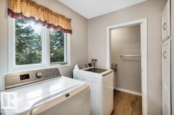 On 13.15 acres just five minutes from Stony Plain, this charming 2171 sf bungalow invites you into a world of comfort and possibility. The main floor flows welcomingly, connecting kitchen, living, dining, and family spaces—ideal for gatherings. Down the hall, find 4 bedrooms & a 5 pc bath, while the primary has a 3-pc ensuite. Laundry and a handy 2-pc bath are just outside the double attached garage. The lower level offers a spacious rec room, fifth bedroom, another bath, sauna, and generous unfinished flex space. Step onto the expansive south-facing deck to soak in nature’s serenity, overlooking nature and fenced space for livestock. The 40x32 shop is flooded with light, has 2 heaters, 2-pc bath, 220V, air lines, and metal roof. There’s a ready spot for an RV or modular with utilities set up. Two wells serve the property – 1 for house and 1 for shop, with water hydrants reaching garden and property’s east side. Three septic systems – house, shop and RV site.