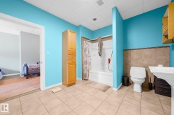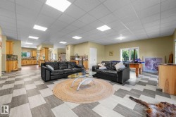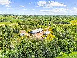 Sprawling bungalow on 78.83 beautiful acres in Parkland County! This property features a 5000+sqft ranch style home with wraparound porch & was designed for energy efficiency, with ICF construction & in-floor heat. Walking into the home, you'll notice the large & open floor plan. The kitchen boasts ample cabinets + pantry & large walk-through storage room, while the living room features an electric fireplace. Down the hall, you'll find 5 massive bedrooms & an office that has plenty of cabinets(was previously used for a homeschool classroom). The primary bedroom has access to the hot tub room & 4 of the bedrooms have 4-pc jack & jill bathrooms, plus there is a 2-pc bathroom off the entrance. The east side of the home has 2 massive bathrooms with multiple shower stalls and toilets which have access to outside. The home is wheelchair accessible! Outside, there is a 6-stall & 3-stall garage with dirt floors + a 48'x56' concrete pad. A beautiful mix of mature spruce & pine trees + approx 35 acres farm land!