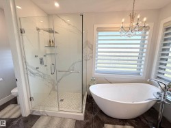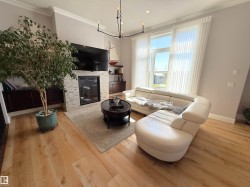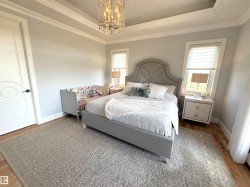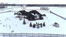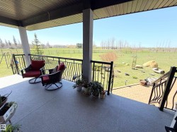 EXECUTIVE BUNGALOW & ATTACHED TRIPLE GARAGE (34Wx28L, heated, 3-pc bath) on 3.04 acres OUT OF SUBDIVISION, 10 mins to Edmonton. Custom built in 2020, this luxurious 2,960 sqft (plus full basement) home features central AC, porcelain tile & Engineered Hardwood floors , 10’ ceilings and a fabulous open floor plan. Sleek living room w/ gas fireplace & built-in shelving. High-end gourmet kitchen w/ huge eat-up island, granite counters; walk-through pantry with sink & beverage cooler; dining room with deck access. Elegant owner’s suite w/ private balcony, walk-in closet & 5-pc ensuite with soaker tub. Finishing off the main: 2nd bedroom & office w/ 5-pc Jack & Jill ensuite, laundry room w/ sink & 2-pc powder room. Upper guest suite: 4-pc ensuite, walk-in closet & balcony. Basement: 2 additional bedrooms, 4-pc bathroom, luxe rec room w/ gas fireplace & gym. Landscaped fully fenced yard, no-maintenance decks, concrete firepit area, dog run, garden boxes, paved drive w/ power gate; 100amp power for future shop.