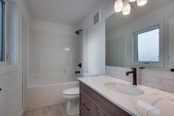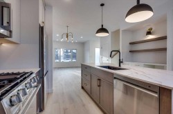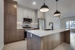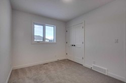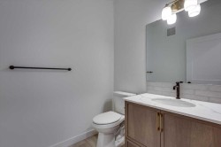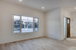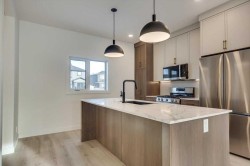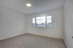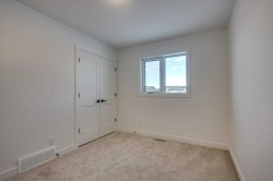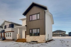 Take the stress out of life by purchasing a brand new home with Alberta New home Warranty included! SUPER CUTE NEW 2 STOREY HOME by Asset Builders 2015 Corp, winner of the 2024 Builders of the Year award, this 3 bedroom, 3 bath home w/nice curb appeal & covered front verandah. Bright & open floor plan w/vinyl flooring throughout the main level & energy efficient Triple Pane windows has amazing flow & lots of natural light. The nice sized entryway opens into your living room /dining area/kitchen. Living room is spacious & will fit your large sectional & enough room in your dining space for all your guests! This awesome kitchen w pantry, island, coffee bar area, under cabinet lighting, 4 stainless appliances (with microwave vented outside!) & quartz countertops...Perfect For Entertaining, or for cozy family dinners. 1/2 bath on main, near large back entrance for easy backyard cleanup. 10'x12' rear deck w/aluminum railing, & northeast facing backyard, + 2 stall gravel parking pad off paved back lane, with room for a large future garage, & RV Parking! 3 bedrooms upstairs! Spacious primary bedroom features double closets & a full 4 pce ensuite. The 2 other bedrooms are of equal size, perfect for kids! A Full bath & there is UPPER FLOOR LAUNDRY. The Basement is open for future family room/entertainment space, bathroom & another bdrm, + dedicated storage room area & has 2 windows so the downstairs is still nice & bright. GST included w/rebate to builder. Top soil to grade. Front sod will be provided. Taxes to be assessed. Move in & enjoy lower utility bills plus take advantage of this strategic location in this newly built home!