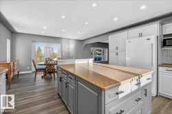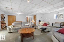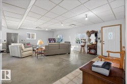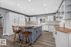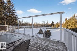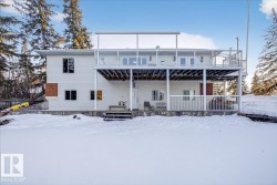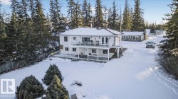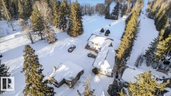 Acreage living in the small community of South Cooking Lake. This 1.44 acre parcel is considered lakefront with a 1999 built, 1410 sq ft bi-level home with ICF foundation with full walk-out basement. The ICF foundation extends to the main level walls & offer sturdy construction coupled with excellent insulating qualities. Wide stairs from the entry lead to the open concept living, dining & kitchen area with garden door access to a massive deck spanning 2/3 of the home over looking the yard & Cooking Lake. As well, the main level features a massive "country kitchen" with huge island, common 4 pc bath with deep soaker tub & laundry hook ups, primary bedroom with 3 pc ensuite & 2nd bedroom. W/O basement is substantially finished, just missing flooring & baseboards. Rough in for bsmt kitchen located in the family room with balance of bsmt featuring 2 additional bedrooms, den & 3 pc bath in mechanical area. Completing the home is a detached 3 car garage with 12' ceiling, 3 sheds, & original home/cabin.