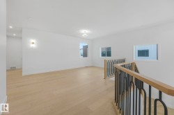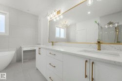 Over 2,600 sqft of thoughtfully designed luxury in Hillshire—one of Sherwood Park’s fastest-growing estate communities. This stunning 4-bedroom home features a dramatic open-to-below living space filled with natural light from expansive windows. The chef-inspired kitchen includes a full appliance package and a secondary kitchen, perfect for entertaining and everyday convenience. High-end finishes are showcased throughout, including a custom stone fireplace that anchors the main living area and luxury vinyl flooring throughout both levels. Step outside to enjoy immediate access to walking trails, with schools, shopping, and stormwater ponds just minutes away. Exceptional curb appeal comes from an exposed aggregate driveway and beautiful exterior stonework, creating a striking first impression. A perfect blend of elegance, comfort, and location.
