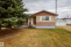 Welcome to this immaculate 2 bedroom, 2 bathroom bungalow in the charming community of Smoky Lake. Sitting on a spacious 17,060 sq ft lot surrounded by mature spruce trees, this home offers privacy and room to enjoy the outdoors. Inside, you’ll find bright, naturally lit living spaces with new laminate flooring in the living room and bedrooms. The lower level includes laundry, a second bathroom, a cold room, and additional unfinished space ready for your personal touch. The home is equipped for a generator hookup in case of power outages. The property also features a double oversized detached garage, perfect for vehicles, storage, or a workshop. Smoky Lake offers a K to 12 school, grocery store, and other quaint local shops, all just 1 hour and 20 minutes from Edmonton.