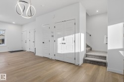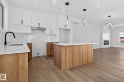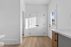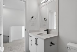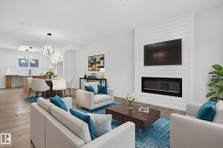 BRAND NEW Townhome with NO CONDO FEES. Open concept floor plan features a spacious living room with electric fireplace, complete with an accent wall. Upgraded ceiling height kitchen cabinets with quartz countertops and soft-close drawers. A nook overlooking the backyard and a 2-piece powder room complete the main floor. Upstairs, the master bedroom features a 3-piece ensuite and Walk-In Closet. 2 additional good sized bedrooms, a bathroom, and a laundry room complete this level. SEPARATE ENTRANCE to the basement, plus a DOUBLE DETACHED GARAGE. Modern Details include: MDF shelving throughout, luxury vinyl plank, upgraded backsplash and premium lighting package. This community is conveniently located just 10 minutes away from the City of Edmonton and has direct access to Highway 16A. Close to all amenities.
