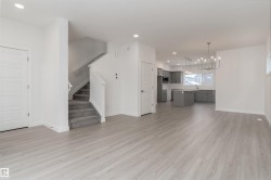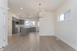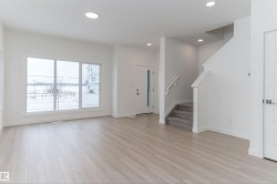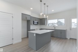 The Sansa II offers a masterclass in streamlined living, balancing crisp aesthetics with everyday utility. This layout features 9’ ceilings on both levels, a separate side entrance, and an inviting foyer that transitions into a sun-soaked front great room. The heart of the home is the rear L-shaped kitchen, equipped with stone counters, a Silgranit sink, and upgraded soft-close cabinetry paired with a dedicated pantry. A tucked-away powder room leads to the expansive backyard and rear parking pad. The upper level provides a versatile loft space and a centralized laundry hub for maximum convenience. The primary retreat includes a generous walk-in closet and a full ensuite with a standalone shower, while two secondary bedrooms share a well-appointed main bath. Completed with matte nickel hardware and the premium Sterling Signature Specification, this residence delivers a polished environment for the contemporary buyer.