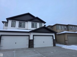 5 Things to Love About This Alquinn Home: 1) Modern Design: A brand-new 2-storey half duplex with a pressure-treated wood deck and a double attached garage featuring EPOXY flooring. 2) Inviting Main Floor: Open-concept living with an electric fireplace, a kitchen island with breakfast bar, and a walk-through pantry leading to the mudroom with garage access. 3) Smart Layout: A separate entrance provides future potential, while upstairs offers a spacious bonus room, laundry area, and 2 bedrooms. 4) Primary Retreat: Unwind in the primary suite with a walk-in closet and a 5pc ensuite. 5) Ideal Location: Close to parks, playgrounds, schools, and everyday amenities, with quick access to the Yellowhead for an easy commute into Edmonton.