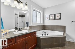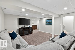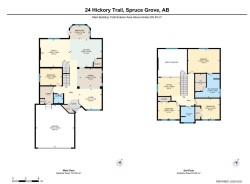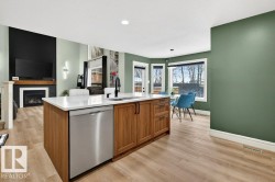 Are you looking for a 4 to 5-bedroom home? This one is on beautiful Hickory Trail in Spruce Grove, backing onto trees & a walking path, close to the Tri Leisure, schools, restaurants, and shopping! Upstairs, there are 3 bedrooms, and the main level has a room that can be converted to an office, a 5th bedroom, or even a larger laundry room. This home has it all with neutral paint throughout, curved doors, new decks, an upgraded kitchen with a large island & quartz countertops, a custom pantry, SS appliances, AND a Breakfast nook with a great view of the trees behind the house! Enjoy a new fireplace feature wall that soars to the ceiling, vinyl plank floors on the main, a dining room feature wall, modern pot lighting, AND an updated 2 pce bath. You can also work from your home office, with a view overlooking the trees. The Primary Bedroom is KING SIZE with a large bath & walk-in closet, and the basement is fully developed for ample living space, with a bedroom, family room, gym/hobby room, and a 4 pc bath.