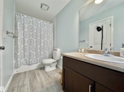 Beautifully renovated 2 bedroom townhouse featuring dual primary suites, each with its own private ensuite - perfect for roommates, guests or a home office setup. This move-in ready unit boasts updated laminate flooring, modern countertops, and a new fridge, giving the home a fresh, contemporary feel. The partially finished basement adds valuable extra living space and includes a convenient 2pc. bathroom, ideal for a rec room, gym or work from home area. Located close to shopping, transit, schools and other everyday amenities. This home offers both comfort and convenience. An excellent opportunity for first-time buyers or investors alike.