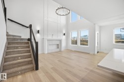 Experience this beautiful New Era home backing onto open space with no rear neighbors—perfect for those who value privacy and modern living. Designed with an open-concept layout, this home boasts 9' ceilings on both the main and basement levels, along with a striking open-to-above great room featuring an electric fireplace and custom feature wall. The main floor includes a flexible den or potential fourth bedroom, a convenient half bath, and a chef-inspired kitchen with quartz countertops and full-height cabinetry. Upstairs, you’ll find a spacious bonus room with a tray ceiling, three bedrooms, and a laundry room that connects directly to the primary ensuite for added convenience. The primary suite showcases dual sinks, a freestanding soaker tub, and a tiled shower. Additional highlights include a side entrance, a tankless gas water heater, MDF shelving, and an unfinished basement ready for your personal touch. MOVE IN READY! ALL APPLIANCES AND BLINDS INCLUDED!