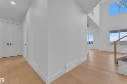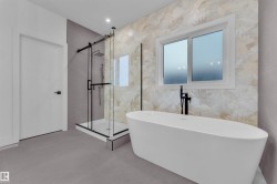 This stunning backing on to green pre-construction custom 2-story single-family home is nestled in the heart of Erin Ridge, St. Albert, AB. Ideally located near schools, parks, grocery stores (including Costco), transit, and numerous amenities, this home offers exceptional value. It features 9-10-20 ft ceilings, including the basement, enhancing the spacious and airy feel. The main level boasts a spice kitchen with a pantry, a cozy fireplace with an open-to-above concept. Altogether, you’ll find 4 spacious bedrooms, including 2 master suites, 4 full baths, a versatile bonus room, and multiple large walk-in closets—perfect for ample storage.—some lots back onto ponds or offer larger yards.**Photos are from a similar home built by the builder; actual finishes & layout may vary.**