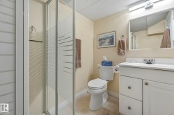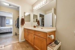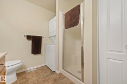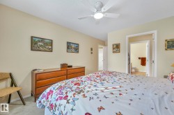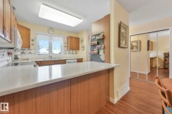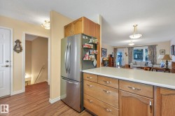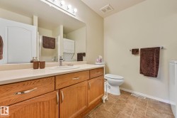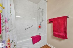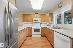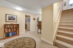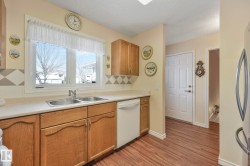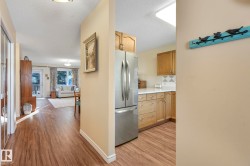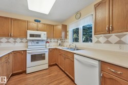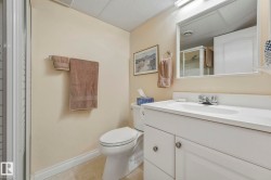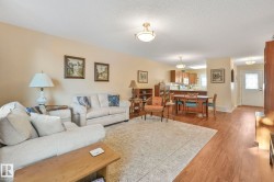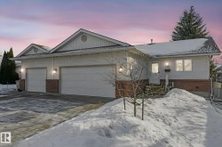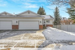 Mint condition and truly turnkey end unit bungalow in a prestigious 45+ Kingswood community. This impeccably maintained bungalow has been freshly painted with brand-new luxury vinyl plank flooring on the main floor, delivering modern, worry-free living with all major updates already completed. Low condo fees in this quiet, well-managed complex where exterior maintenance is fully handled. The home offers 2+1 bedrooms, 3 bathrooms, main-floor laundry, a fully finished basement, and a large double attached insulated garage. Bright and open main floor with lots of south facing windows throughout. Major upgrades include the furnace + hot water tank (2019), central A/C, central vacuum, newer appliances, a newer deck, and updated door hardware—clear evidence of pride of ownership. Rare facing Kingswood Blvd, residents enjoy exceptional amenities including a party room, library, games room, guest suite, and direct access to walking trails. Steps from Servus Place Rec Centre and short drive to all amenities.