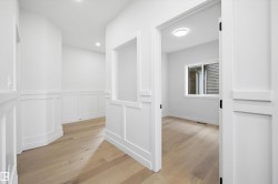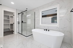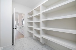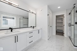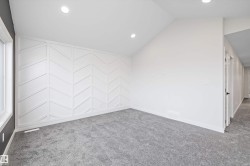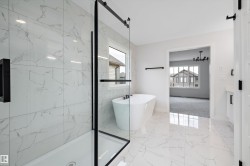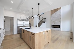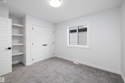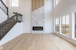 Location, Location! Welcome to this brand new WALKOUT BACKING ON TO THE POND, almost 2400 SQFT 2 storey New Castle 1B model by award winning Blackstone Homes in Chérot St. Albert. This home won the best home with BILD 2023. Upon entering, you will be welcomed by nice foyer leading to a much needed den, mudroom with built ins & walk through pantry leading to chef dream kitchen offering built in appliances with fridge/freezer combo & huge island. Dining area with wet bar. Great room offers 18 feet open to below ceiling with linear fireplace finished with wood/tile & 3D ceiling. The 2nd floor offers 3 good size bedrooms, 2 baths, bonus room. Master bedroom is huge with beautiful spa like ensuite offering double sinks, shower & freestanding tub, huge WIC. Other features -9' main/basement ceiling, MDF shelving, Maple railing, Black plumbing/Lighting fixtures, upgraded quartz, hardwood floors, Blinds, rear deck, New Home Warranty. Great location - Easy access to Ray Gibbons Dr, close to shopping & playground.