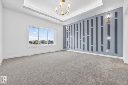 Facing the walking path that leads to a beautiful pond this 2116 Sq Ft 3 Bedroom 2-Storey Open to Below is a show stopper and the perfect family home! The Open Concept Main Floor Boasts Beautiful vinyl plank flooring, Large Den, Adjacent 3-piece Bath, White Modern Cabinetry, Full Appliance Pkg, Quartz Counter Tops, Large Island, Fireplace Feature Wall, Large Mudroom with storage leads to a Walk Through Pantry with cabinetry, Living Room boast large Windows, Coffered Ceiling showcasing a beautiful 18' Open to Below View from the Second Floor. Gorgeous Primary Suite with Coffered Ceiling and Large Ensuite with Soaker Tub, Large Tiled Shower with Double Sink! Spacious Bonus Room with coffered Ceiling, two more large bedrooms, Laundry Closet and Full Bath! Basement is unfinished but with side entrance and 9' Ceiling the potential is endless!