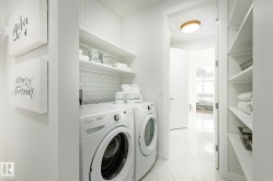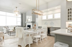 Introducing the “Sedona” by MasterCraft builder, Homes By Avi. A luxury half-duplex bungalow villa nestled in the heart of Riverside, St. Albert. LOVE where you LIVE surrounded by tranquil walking paths, ponds & green-space. Designed for comfort living with everything you need on 10 ft main level; primary suite w/luxury ensuite, laundry, front flex space (or guest room), mudroom off garage & powder room. Sophisticated finishings throughout include luxury vinyl plank flooring, electric F/P w/maple-stained mantle, 8ft interior doors, satin nickel door hardware/lighting, chrome plumbing fixtures & 6mm rain-textured shower door. Entertaining kitchen showcases 42” cabinets, soft close pot & pan drawers, upgraded quartz countertops, eat-on centre island, corner pantry w/MDF shelving, hood fan, microwave & robust appliance allowance. Finished basement w/734 sqft of developed space that includes rec rm, bdrm & 4pc bath. Massive amounts of storage in undeveloped section. Back deck & 1 year lawn maintenance.