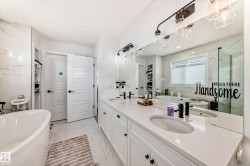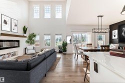 A FULLY FINISHED BASEMENT, and massive PIE-SHAPED YARD with an un-obstructed view, all on JAMISON CRESCENT, is what sets this gorgeous home apart from comparable homes in St. Albert! We back on to a POND with walking trails, we have 3000sqft of living space, we have private lake access to the BEACH.. what’s more ..? Soaring vaulted ceilings, open to above complimented by a grand fireplace feature wall, a walk-through pantry/mudroom, central A/C, and a main floor office. Upstairs, a BONUS/FLEX ROOM overlooking the POND, and 3 spacious bedrooms. The Primary Ensuite is a spa-like oasis, with attached walk-in closet. Discover amazing new schools, parks, playgrounds, and walking trails that will take you there! Experience the one-of-a-kind lifestyle on Jamison Cres, with it's unique SUMMER BBQ BLOCK PARTIES, and Annual Block-wide Easter Egg Hunts! See 3D TOUR Link in URL section