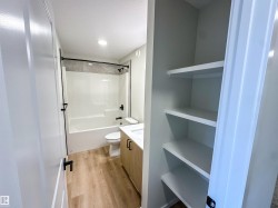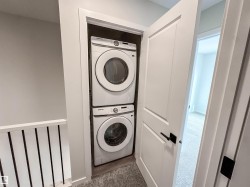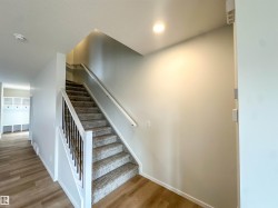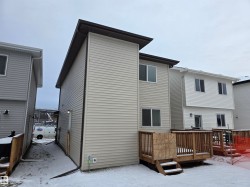 Located in the desirable Brickyard community, this newly built 2-storey Alquinn home is just steps from the recreation centre, schools, parks, playgrounds, and shopping. The thoughtfully designed open-concept main floor features spacious living, dining, and kitchen areas anchored by a cozy fireplace—ideal for everyday living and entertaining. The chef-inspired kitchen offers a central island with breakfast bar, ample storage, and sleek modern finishes. Upstairs, the smart layout includes a bonus area, two additional bedrooms, upper-floor laundry, and a full bathroom. The primary suite serves as a private retreat, complete with a walk-in closet and a beautifully finished 5-piece ensuite. This home delivers comfort, functionality, and timeless style in a highly sought-after location. UPGRADES INCLUDE: electric fireplace, bonus area, upper-floor laundry, upgraded finishes throughout, modern kitchen cabinetry, and more.