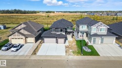 Executive family living in Stony Plain's most prestigious subdivision! This brand new 2700 sq ft PLUS fully finished basement 2-storey is the perfect place to call home. Open concept main floor with beautiful white kitchen, quartz countertops & huge pantry. Appliance allowance included. Great dining area to host family & friends! Massive living room with towering ceilings, loads of windows & electric fireplace. Front den is perfect home office! Upstairs master suite features tons of space, 5pc ensuite & large walk in closet! 2 more bedrooms are perfect for kids or guests. UPSTAIRS LAUNDRY! Fully finished basement features massive rec room with wet bar, perfect for a home movie night with a great spot for a pool table too! 4th bedroom too! Triple attached garage is fully insulated! Great location backing onto a greenspace & walking path. Close to restaurants & shopping. some photos are virtually staged