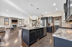 Tucked away in a quiet cul de sac on a 10,000+ sqft pie shaped lot awaits an original owner Homexx built home ready for a new family to love. This 2,500+sqft 4 bed, 2.5 bath home has been meticulously maintained over the years and boasts numerous upgrades such as rich hardwood flooring, quartz countertops in the kitchen, s/s appliances & gas stove, walkthrough pantry, custom built ins throughout, full height stone facing gas fireplace, wrought iron railings, a generous primary bedroom w/ 5 pce ensuite & walk in closet, top floor laundry, underground sprinklers, central A/C, heated garage w/ hot/cold taps & drain, BBQ gas & fire pit line to the deck, outdoor speakers, professional landscaping incl. quick curb, a large storage shed and so much more! The basement is 80% complete with all the heavy lifting done creating even more space for a growing family. Pride of ownership is evident throughout and a home like this with the sought after location and lot size RARELY comes to market.