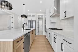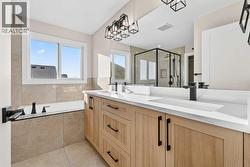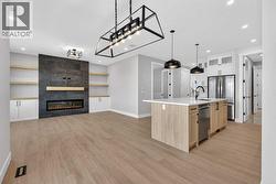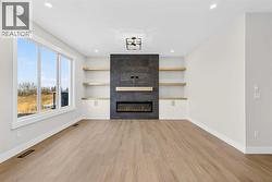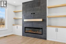Welcome to 180 Wildrose Drive, nestled in the vibrant and family-friendly community of Wildflower, where scenic pathways, beautiful parks, and peaceful living come together. This stunning, move-in ready home welcomes you with a spacious entryway and soaring ceilings that flood the space with natural light. The main floor features durable LVP flooring complemented by ceramic tile in key areas, blending style with everyday practicality. The open-concept layout is ideal for gathering with loved ones and creating lasting memories. The kitchen is beautifully appointed with ceiling-height cabinetry, quartz countertops, a gas cooktop, built-in oven and microwave, and a gorgeous west-facing view. With 9 ft ceilings on both the main floor and basement, along with 8 ft doors throughout, the home feels bright, airy, and elevated. The living room is a true showstopper, highlighted by a striking feature wall with an electric fireplace and sleek tile surround, creating the perfect space to relax and unwind. Upstairs, the bonus room boasts vaulted ceilings and offers a versatile space ideal for board game nights, a toy room, or family movie nights. The primary suite serves as a private retreat, complete with a tray ceiling, designer feature wall, and a luxurious 4-piece ensuite showcasing a soaker tub, a spacious walk-in shower, and heated floors for year-round comfort. The walk-in closet features custom MDF shelving, thoughtfully designed for both organization and style. Step outside to a private backyard with no rear neighbours, offering exceptional peace and privacy. The yard is not landscaped, providing a blank canvas to design the outdoor oasis of your dreams, whether that is a garden, patio, or play space. The front yard includes sod and a tree provided by the builder, giving the home instant curb appeal. The garage is equipped with a gas line, making it easy to add a heater in the future for added comfort during colder months. A separate side entrance to the basement offers excellent potential for future development and customization to suit your lifestyle. Contact your agent today! (id:27)