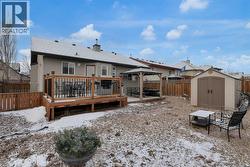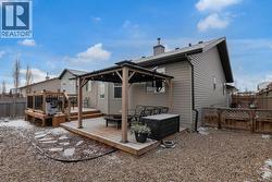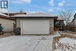 HOME SWEET HOME! This is your AMAZING opportunity to enjoy the perks of small town living in a wonderfully maintained, move-in ready bungalow in the heart of charming Strathmore backing on to a school/green space! This stunning home offers 3 bedrooms, 2.5 bathrooms, 2,183+ fully developed SQFT throughout and a double attached HEATED garage. The inviting curb appeal and front porch leads in you inside where you will find your gleaming hardwood flooring, vaulted ceilings and an abundance of windows flooding the home in natural sunlight. The main floor offers a spacious and large living room perfectly complimented by a cozy gas fireplace, a foyer, formal dining area, a wonderful 4 piece bathroom, convenient laundry room and the gourmet chef’s kitchen complete with custom cabinetry, center island with built-in storage, corner pantry, stainless steel appliances and a garden door that leads you to the rear deck. Completing this floor is a great-sized bedroom and the magnificent primary retreat with a large walk-in closet and an elegant 4 piece ensuite bathroom. The fully finished basement features a huge recreation room/living room perfect for a growing family, a 3rd bedroom, a 2 piece vanity bathroom (roughed in for a shower) and the all the storage space you could require. The hot water tank is newer and 60 gallon (2021). Outside, there is the double attached HEATED garage with 2 additional driveway parking spots and the fully fenced, low-maintenance backyard providing you with your own private oasis with a pergola, large deck and shed. Located close to all major amenities including steps from a school, playground and park, shopping, walking paths, Strathmore Lake and a quick 30 minute drive to Calgary. This is the opportunity you have been looking for, book your private viewing today of this GEM! (id:27)