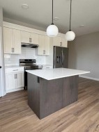 NO condo fees in this beautifully designed 2bedroom, 1.5-bathroom bungalow townhouse built by Edge Homes. This end unit is ideal for first-time buyers or those looking to downsize without compromising on space or style. The open-concept main floor features a bright, modern kitchen with quartz countertops, a large island, soft-close cabinets, under-cabinet lighting, upgraded stainless steel appliances, and durable vinyl plank flooring that flows seamlessly through the kitchen, dining, and living areas. The north-facing primary bedroom shares a spacious ensuite with the second bedroom, complete with double sinks and a private shower and toilet area. Main floor laundry adds everyday convenience. Downstairs future development potential offers a generous entertainment space, two large bedrooms, and a full 4-piece bathroom — perfect for hosting guests or creating a cozy retreat. Step outside to your huge 20x6 deck and sunny, south-facing backyard, ideal for relaxing or entertaining. Located in the peaceful new Grayhawk subdivision on Sylvan Lake’s west side, you’ll love being close to walking paths, future schools and shops, with quick access to the lake, golf courses, and amenities — all while enjoying a quiet community setting. Built with energy efficiency in mind and backed by a New Home Warranty, this home offers peace of mind and modern comfort. GST is included with rebate to the builder. Completion date is estimated spring 2026— inquire for details. Photos shown are renderings of a similar home and may not reflect final finishes.