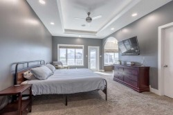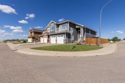 Welcome to 5401 43 Street in Taber — an exceptional family home situated on a quiet corner lot, thoughtfully designed with comfort, function, and modern elegance in mind. The exterior impresses with striking curb appeal, featuring Hardie board siding with smart trim accents, exposed aggregate concrete, PVC windows, and maintenance-free handrails. The fully fenced and professionally landscaped yard includes a stamped concrete patio that also doubles as R.V. parking, a covered lower patio ideal for a future hot tub, and a spacious back deck — the perfect place to enjoy peaceful, east-facing sunrises. A charming front porch invites you to start your mornings with a coffee in hand.Inside, the main level is bright and open, enhanced by vaulted ceilings and an airy, functional layout. The kitchen is beautifully appointed with quartz countertops, a large island with an undermount sink, updated appliances, a pantry, garburator, and tile backsplash. The adjacent dining and living spaces are warm and inviting, centered around a gas fireplace and built-in desk area, and complemented by a full-home speaker system—ideal for everyday living and entertaining. Privately situated above the garage, the spacious primary suite offers a quiet retreat. It features a tray ceiling with ambient mood lighting, access to a private balcony, an expansive walk-in closet, and a luxurious 6-piece ensuite with an extra-long soaker tub, dual vanities, and generous built-in storage. Two additional well-sized bedrooms and a stylish 4-piece bathroom complete the main floor. The fully finished basement offers 9’ ceilings, a large family room with a second gas fireplace, two more generously sized bedrooms—each with walk-in closets—a 4-piece bathroom, and a wet bar. Comfort and practicality continue with in-floor heating, air conditioning, and rough-ins for central vacuum. Additional highlights include a heated double attached garage, underground sprinklers, exposed aggregate front steps, an outdoor speaker system, and durable asphalt shingles. Perfectly located just minutes from schools, parks, and all amenities Taber has to offer, this beautifully maintained home is an ideal choice for families seeking space, style, and functionality