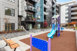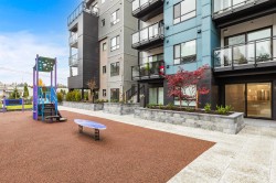 YOUR OPPORTUNITY TO OWN A BRAND NEW CONDO! This Jr. 2-bedroom ground floor unit at Abbotsford's JACOB Complex is brand new and move-in ready at the end of Summer. Situated nearby Historic Downtown Abbotsford and the Rail Disrict - everything you need is in walking distance or a short drive: Mill Lake Park, Seven Oaks Mall, Abbotsford Centre, UFV, Costco and 4 minutes from all levels of school. Designed by reputable Redekop Faye; the JACOB is timeless and low maintenance; with manicured courtyard 'The Gathering Place' and family friendly playground. Unit 115 includes: high end appliances, upgraded Laminate flooring throughout main living space and both bedrooms, 1 parking (truck size), 1 storage unit, and is in the "Light" Colour Scheme, with easy first-floor access for pets and kids!