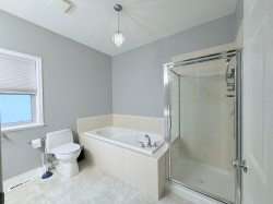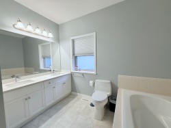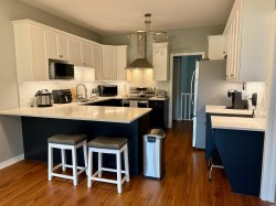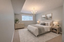 55+, House-Sized, DETACHED, Air Conditioned rancher w/ finished basement in Emerald Place. Unit includes ASSIGNED PARKING for 4 vehicles: oversized double garage + 2 outdoor spots. NO SHARED WALLS. Spacious plan with 9’ ceilings, 4 large bedrooms & 3 full baths. Updated kitchen features quartz counters, sit-up bar, Miele & Samsung S/S appliances, and generous cabinetry. Freshly repainted throughout; laminate H/W flooring in cozy main living areas. Finished basement plus 2 large storage rooms for your ideas. Note: Home faces Old Yale Road—traffic can be noticeable during weekday peak periods. Priced accordingly for buyers who value a detached 55+ home with outstanding space, parking and walkability in a well-kept 16-unit community within walking distance to downtown. Move in and enjoy.