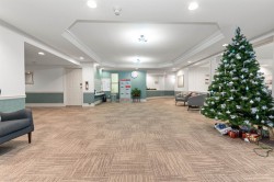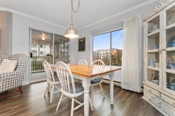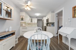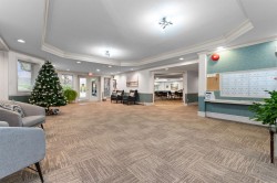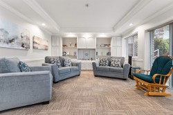 Rarely available home in the 55+ community of Lakewood Gardens. Fantastic central location just steps away from shopping and Mill LakePark. You’ll love this UPDATED spacious 1283sf, 2 bed / 2 bath CORNER UNIT. This home boasts amazing kitchen & bathroom renos. The kitchen has ample cabinetry, generous counter space & newer appliances. Open-concept living & dining area w/ cozy fireplace. Large windows fill the space with natural light. Enjoy the added benefit of a partially enclosed covered balcony. Included storage unit located next to the suite for ease of use. In-suite laundry & large space for pantry. Well managed building with secured entry & elevator access. Amenities include a guest suite, gym & a community lounge. 1 underground parking spot. Hot water heat & gas incl in strata fee.