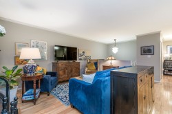 Updated 3-bdrm, 2-baths townhome offers 1,657 sq ft of comfortable living in a well-run, family-friendly complex. Centrally located and within walking distance to schools, parks, shopping and restaurants. The main floor features two large bedrooms, renovated bathroom, and a beautifully updated kitchen that is open to the bright living and dining areas, creating a spacious, open-concept. Step outside to the large, fenced south-facing yard—perfect for summer BBQs and outdoor enjoyment. A hard top gazebo shelters a 10 ft-12 ft patio. Below, you’ll find a generous family room, a third bdrm, an updated bath and a laundry room. Easy parking for 2 cars and plenty of storage throughout. Central A/C keeps the home cool in summer, while the wood-burning fireplace adds warmth and charm in winter.