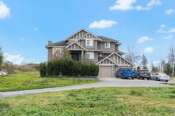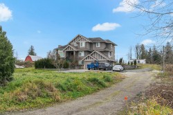 PRIME HOLD! 6 PRIME ACRES WITH 2010 BUILT HOME! POTENTIAL FOR FILL SITE. Connected to City Water, Sewer at Road, directly across from Development / Non ALR land. This 2010 built 4300 sq/ft home features 7 bedrooms, den & 4.5 bathrooms including 2-bedroom legal suite. Additional flex room, den & roughed bath. Open floorplan, formal living, family & dining room. Amazing millwork throughout. LOCATION! Property has easy access to Fraser Hwy, Hwy 1, 16th Ave, & growing Aldergrove community. Calling savvy investors! Ideal location across from subdivisions, growing area & utilities present. Land is ready for your ideas! Room for your toys, rigs, trucks & equipment. BONUS, build your LEGAL 2nd home (approx 970 sq/ft) & Shed!