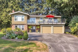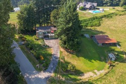 Fabulous 5- acre property on one of Bradner/Mt.Lehman's most desirable dead end streets. Just 5 minutes to Highstreet mall, this charming basement entry home features 4 bedrooms, 3 bathrooms, a spacious living room, large family room and an updated kitchen with gas range and stainless appliances. Enjoy stunning views from the wrap around deck with access from the kitchen. Cozy private deck at side yard with great firepit to enjoy on those fall evenings. Extras include a barn with twin lean-to shelters, detached storage shed and hobby greenhouse. A rare opportunity to live, invest or build your dream home on this prime location. Hay fields are fenced and could be a great home for livestock or horses.