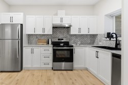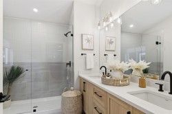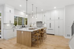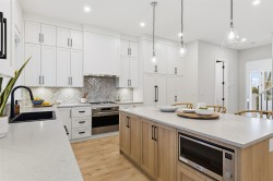 Need a New Home right away? – The Glenridge on Lot 118 backs onto a private greenbelt and is move in ready this March and comes fully loaded with upgrades! This Su Casa designed home features a huge gourmet kitchen incl. integrated fridge & dishwasher, Smeg wall oven & gas stove, microwave, quartz counters, and oversized island w/storage. Living room features gas fireplace w/quartz surround & sundeck access. Dining room, powder room & mud room completes the main floor, finished in durable laminate. Upstairs, the primary suite incl. a sitting room, WIC & 4-piece ensuite, two additional bedrooms, 4-piece bath & Samsung laundry. Finished basement with flex space for main home plus a legal 1 bed suite. Plus GST. Interior pics of show home.