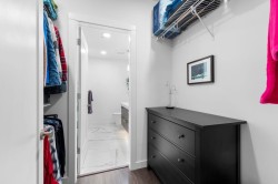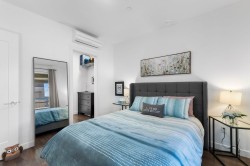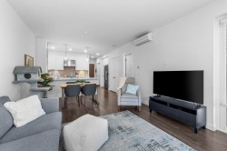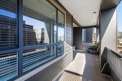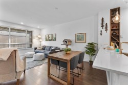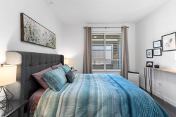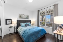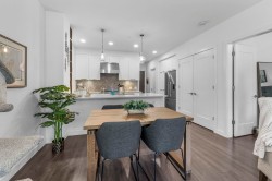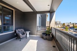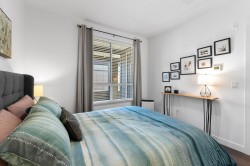 Experience modern luxury living in this meticulously maintained, 1 bedroom + den, 1.5 bathroom home at The Residence at Gateway. Designed with comfort and quality in mind, this residence features 9-ft ceilings, wide-plank flooring, and a bright open-concept layout that maximizes the space. The gourmet kitchen showcases premium stainless steel appliances, sleek cabinetry, and refined modern finishes. Enjoy efficient year-round comfort with a heat pump system and radiant heated bathroom floors. Step outside to a large private patio, perfect for relaxing or entertaining. Built to a high standard with premium and high-end finishings throughout. Includes a secure, gated storage locker with electricity. Ideally located minutes from UFV, the hospital, shopping, dining, and everyday amenities.