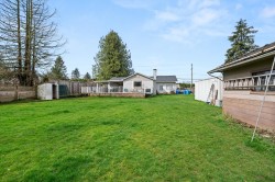 An amazing opportunity! This charming rancher sits on a spacious, fully fenced 0.34-acre lot OUTSIDE THE ALR with NO EASEMENTS, making it a fantastic property. Enjoy recent updates including a new roof (2020), furnace, and AC (2022) for year-round comfort. The backyard features a 110V 16'x12' detached shop and a spacious deck with wiring for a hot tub. Conveniently located just minutes from Fraser Highway, schools, and shopping, this home offers both comfort and future potential. According to the new Abbotsford land plan, the property is designated for future Light Industrial use (confirm with the city). Schedule your private showing today!