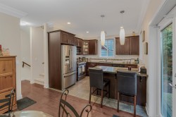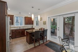 Welcome to Ledgeview Villas! This 4-bedroom, 3-bathroom end unit is bright and spacious with a functional layout and plenty of room to grow. The open-concept main floor is ideal for everyday living and entertaining. The kitchen features a gas range & granite countertops. Off the kitchen are french doors leading to the patio. Upstairs you’ll find the primary bedroom with ensuite and walk-in closet, 2 more bedrooms, and laundry. Downstairs features an extra bedroom. Double garage with 2 parking spaces on the driveway. Rentals are OK and pets are allowed in this complex. Close proximity to parks and hiking trails, and some of the best school catchments in Abbotsford. This townhome is located at the top of the complex in the most private location backing onto the greenbelt.
