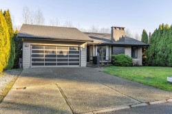 A desirable rancher with basement in Central Abbotsford. You can't beat this location! A flat private lot backing onto treed ALR land and located on a quiet cul-de-sac. Homes don't often come available on this street! The main floor features two bedrooms, a cozy living room with fireplace and a spacious family room leading to a large sundeck to enjoy nature out your back door. The primary bedroom is spacious with a walk-in closet and 2pc ensuite. Downstairs is highlighted by a massive rec room offering many possibilities, two more bedrooms with large windows and a laundry room with adjacent storage room. The basement has a separate private access. Upgrades to this well cared for home include - newer roof, upgraded furnace, hot water on demand and air conditioning.