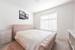 Modern 3 bed corner-unit townhouse built in 2023 and still under warranty! Bathed in natural light, the bright open-concept main floor features a stunning quartz-island kitchen, elegant modern light fixtures, and a spacious balcony perfect for summer BBQs. Quartz counters grace every bathroom, and the primary suite offers a luxurious walk-in closet with private ensuite. All bedrooms are generously sized and beautifully bright—perfect for a family-friendly lifestyle. Double garage plus an oversized parking pad provide ample space. Enjoy the large fenced backyard with a covered patio—ideal for entertaining or relaxing. Pets welcome. Just steps from vibrant historic Downtown Abbotsford’s charming restaurants, shops and cafes!