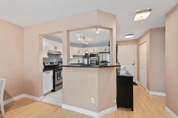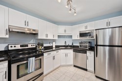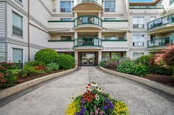 Top floor 2 bed, 2 bath condo in desirable Emerald Springs! Enjoy peaceful south-facing treed views overlooking the greenbelt. This bright & airy home features vaulted ceilings, two balconies and an open layout perfect for modern living. Renovated with brand-new kitchen, granite counters, stainless steel appliances, flooring, lighting, updated ceiling sprinklers and fresh paint—just move in and enjoy! Well-maintained complex with a gym & clubhouse. Updated with fibre optic internet and cellphone intercom. Prime location—walk to shopping mall, Mill Lake, playgrounds, pool, schools, library, and transit. Minutes to hospital and Hwy 1. A rare find in a sought-after community! Buy this home and enjoy my 1-Year Buyer Satisfaction Guarantee Program.