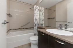 TOP FLOOR west facing unit! Vaulted ceilings in the living room with a cozy electric fireplace. The kitchen has granite counters and stainless steel appliances and lots of prep and counter space. The bedroom is spacious and has a large closet area. A den area for a small office. This unit is in close proximity to the college, hospital and freeway access going east or west. The building offers a gym, games room and guest suites. It comes with a secure underground parking and storage on the same floor as the unit. Loads of visitors parking. 1 dog or 1 cat, no age or rental restrictions.